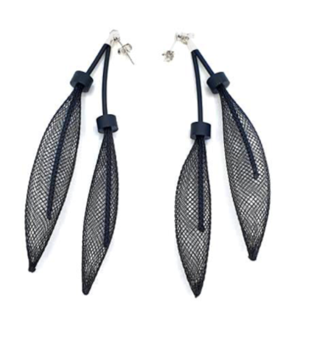 メッシュのチューブを羽が舞うようにデザインされたピアス。ボリュームがありながらとても軽く、ネックレスとセットでお使いになるととても華やかです。 シンプルな装いにアートに映えます。 <品番> EA21-577 <サイズ> 長さ:約11cm 幅:約1.5cm(メッシュ部分) 重さ:約1g(片耳) <素材> ナイロン、塩化ビニル樹脂、合金 ※留め具がフックになる場合がございます。 <原産国> イタリア ※デザイン上、サイズ、重さ、形が写真・スペックと異なる場合があります。